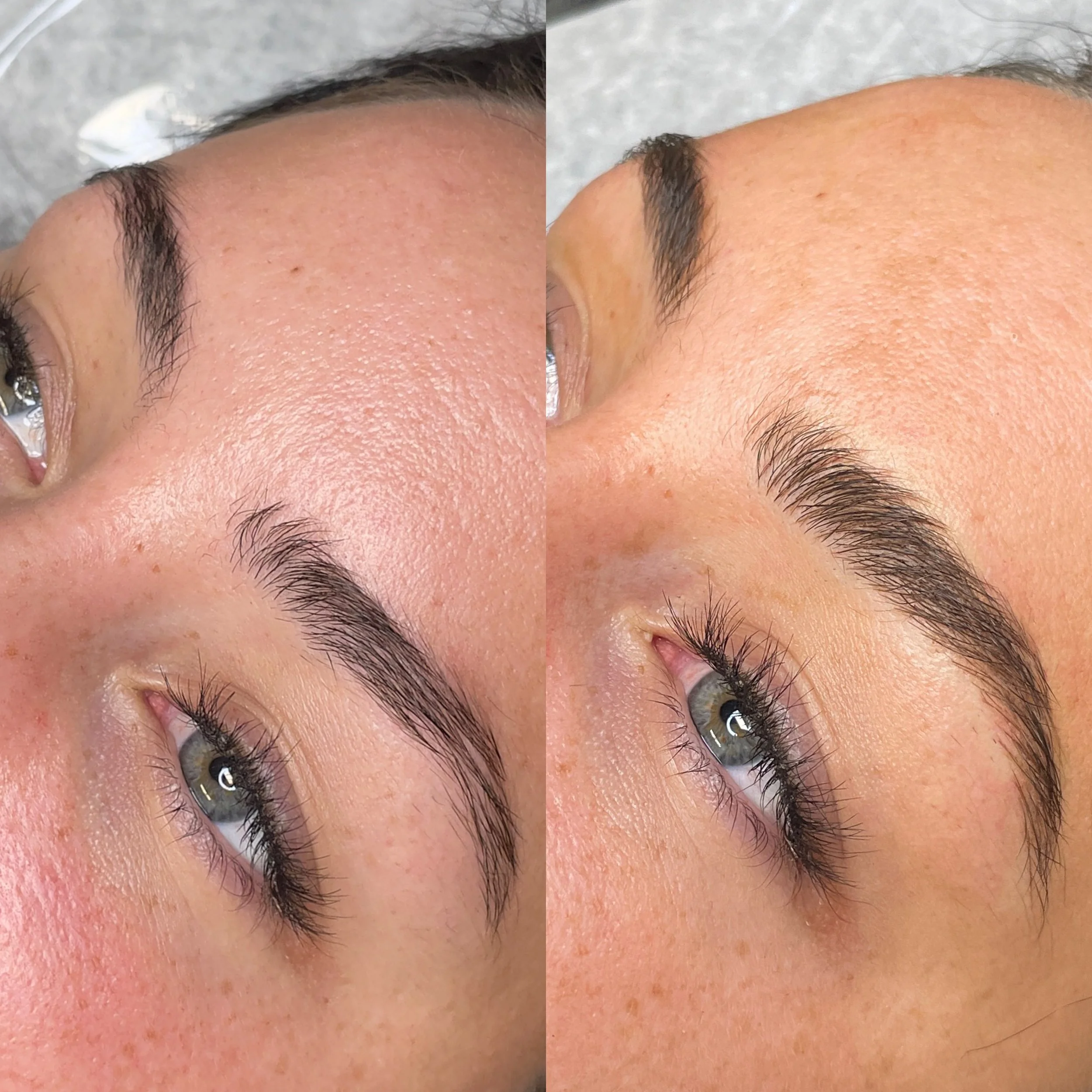 Microblading is a semi-permanent brow technique that uses a handheld tool to create ultra-fine, hair-like strokes that mimic the look of real eyebrow hairs. Each stroke is carefully placed to enhance your natural brow shape, resulting in beautifully defined, natural-looking brows.